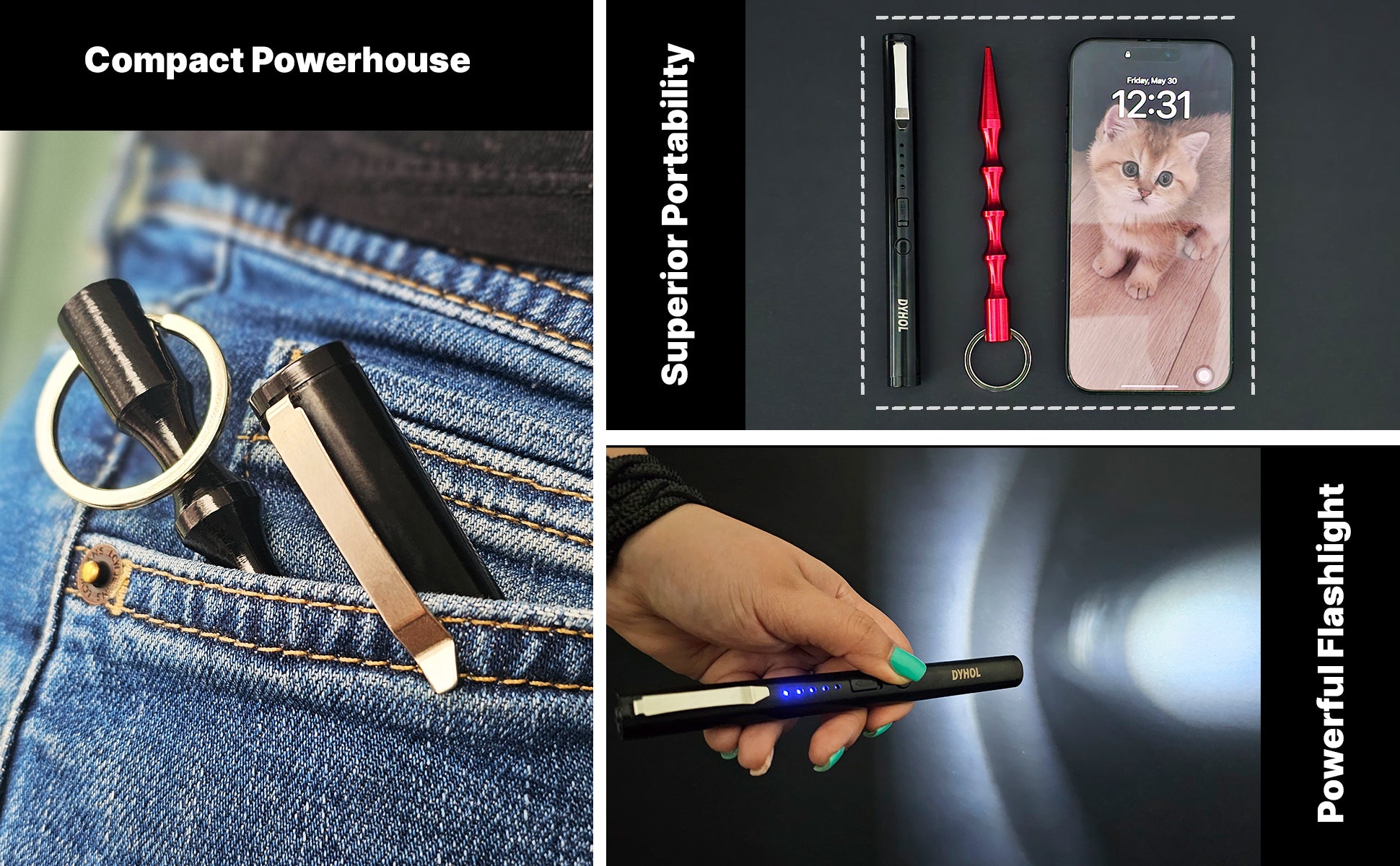 DYHOL Mini Stun Flashlight & Aluminum Safety Stick Combo – USB Rechargeable Stun Device with Battery Indicator, Compact Emergency Glass Breaker & Everyday Personal Safety Accessory