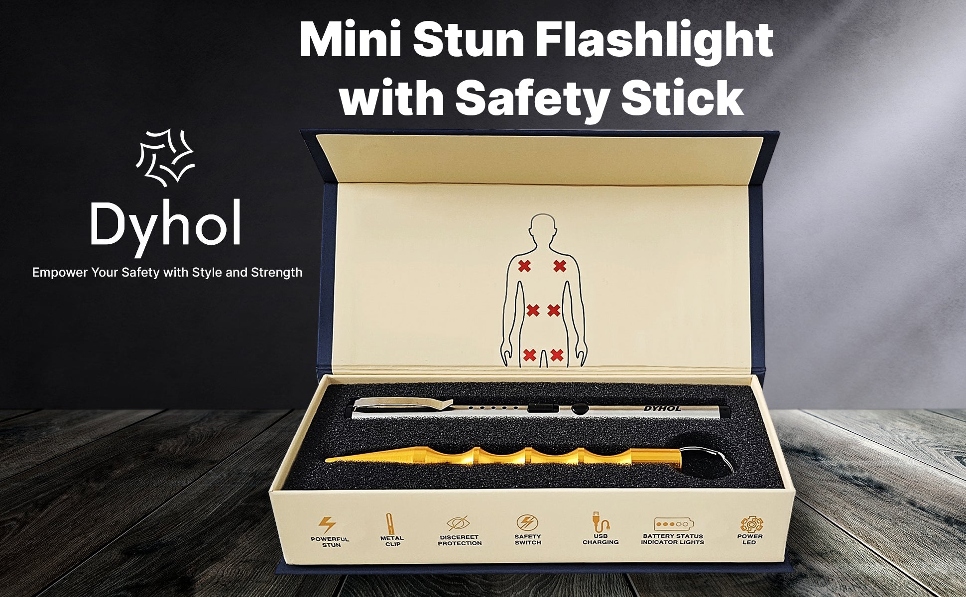 DYHOL Mini Stun Flashlight & Aluminum Safety Stick Combo – USB Rechargeable Stun Device with Battery Indicator, Compact Emergency Glass Breaker & Everyday Personal Safety Accessory