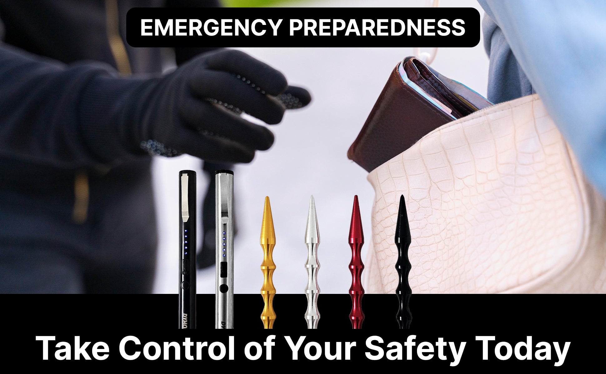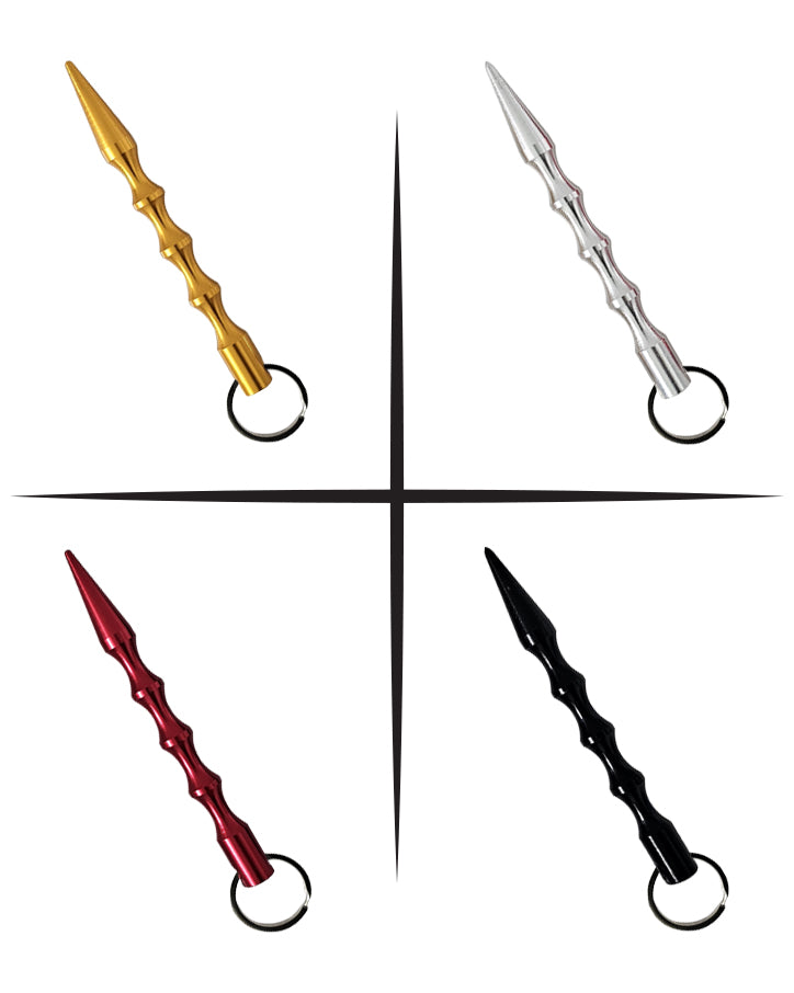 Stylish aluminum safety stick keychains in black, silver, gold, and red. Lightweight, durable, compact design for everyday safety and emergencies.
